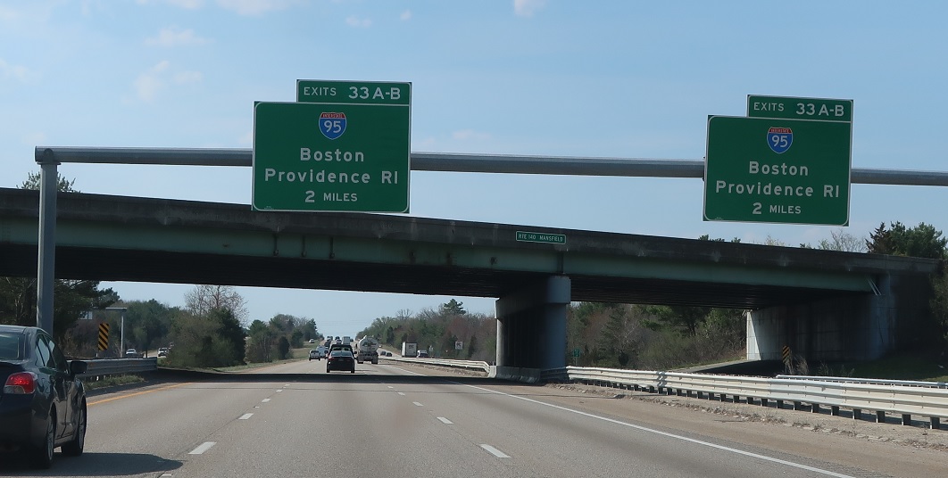 As Route 140 traffic merges on, we’re two miles from I-95.