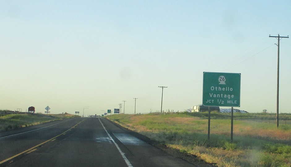 Taking SR 26 west across the southern boundary of Othello for a mile or so leads to the eastern terminus of SR 24, which heads to Yakima