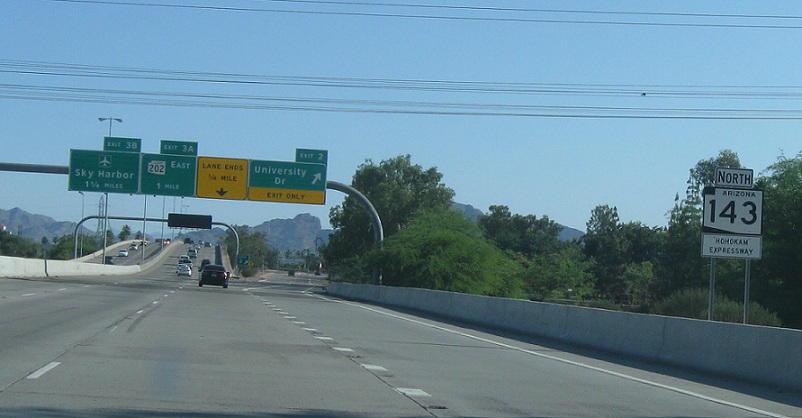 Reassurance shield at the beginning of SR 143/Hohokam Expressway