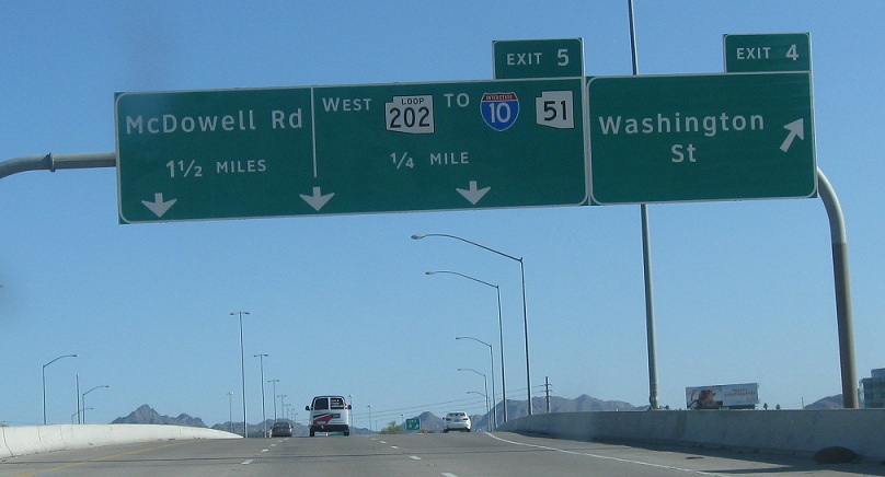 Exit for Washington St. 1/4 mile to Loop 202 West