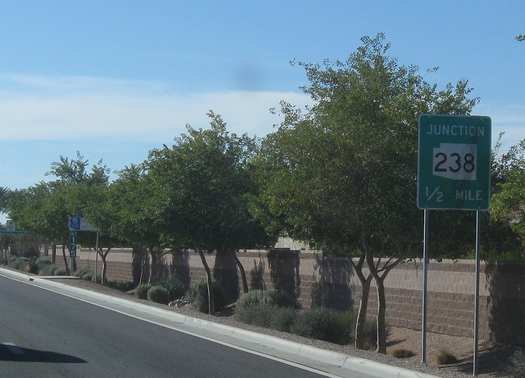 As we enter Maricopa, we’ll get advance notice for SR 238, coming up in half a mile
