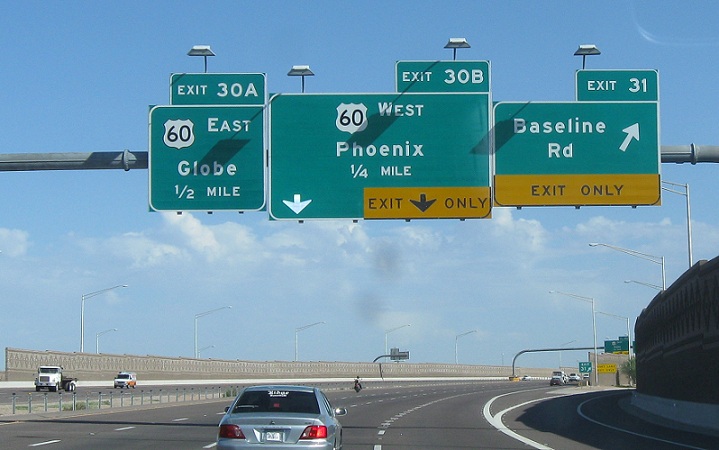 Exit for Baseline Rd. Get ready to exit for 60 west towards Phoenix