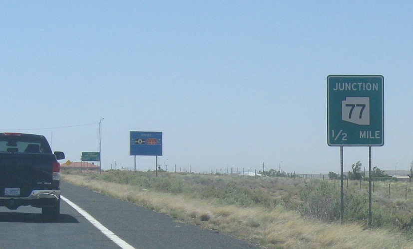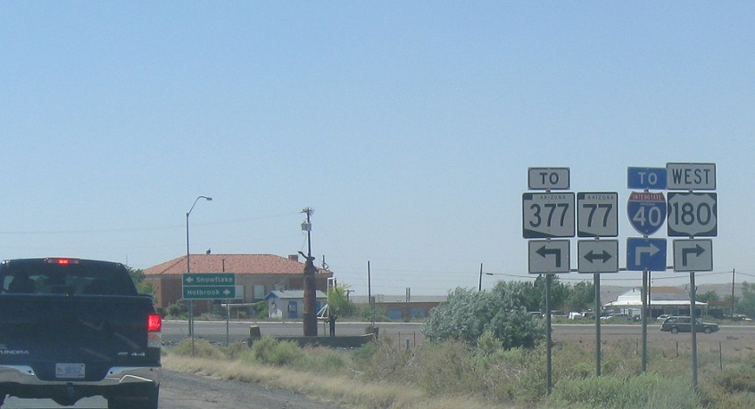 Turn right for 77 north and left for 77 south. 180 officially joins 77, with 77 as the primary route. 180 won’t fly solo again until Flagstaff