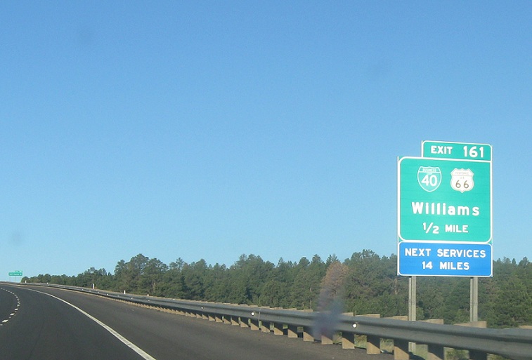 Reassurance shield after Grand Canyon Blvd, an intermediate Williams exit