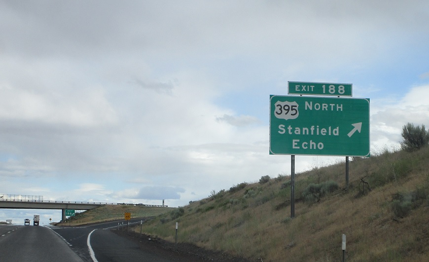 US-395 north exits, heads up through Stanfield and Hermiston. 395 south will join the freeway