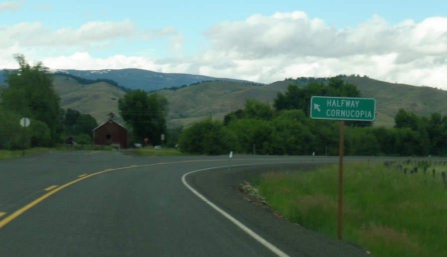 About a half mile later, keep left for OR 414, which heads west back into Halfway.