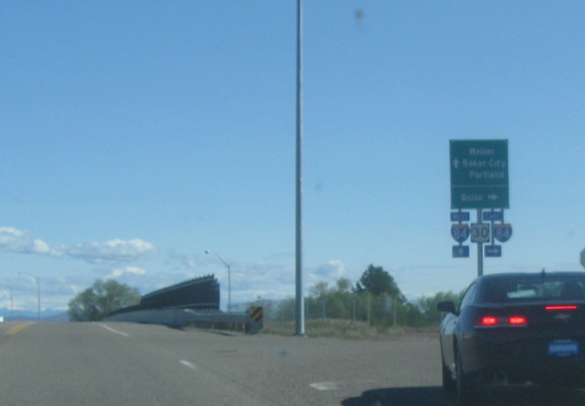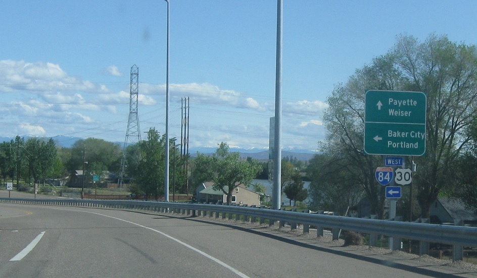 Turn left for I-84/US-30 west towards Baker City and Portland. Stay straight for OR 201 north to Payette, Idaho and Weiser, Idaho. US-30 Business ends.