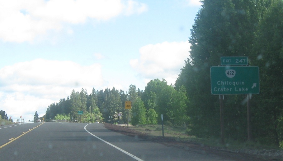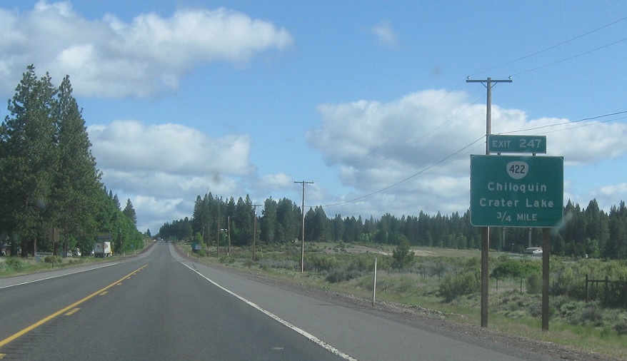 Exit for 422, which heads back down into Chiloquin, but also shoots west over to Oregon 62.