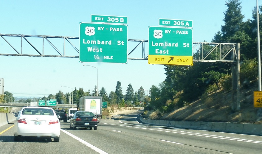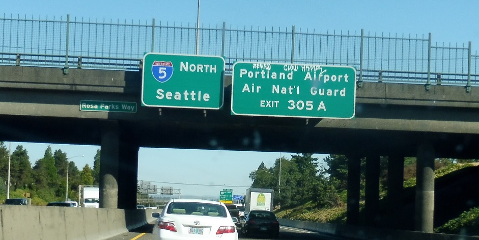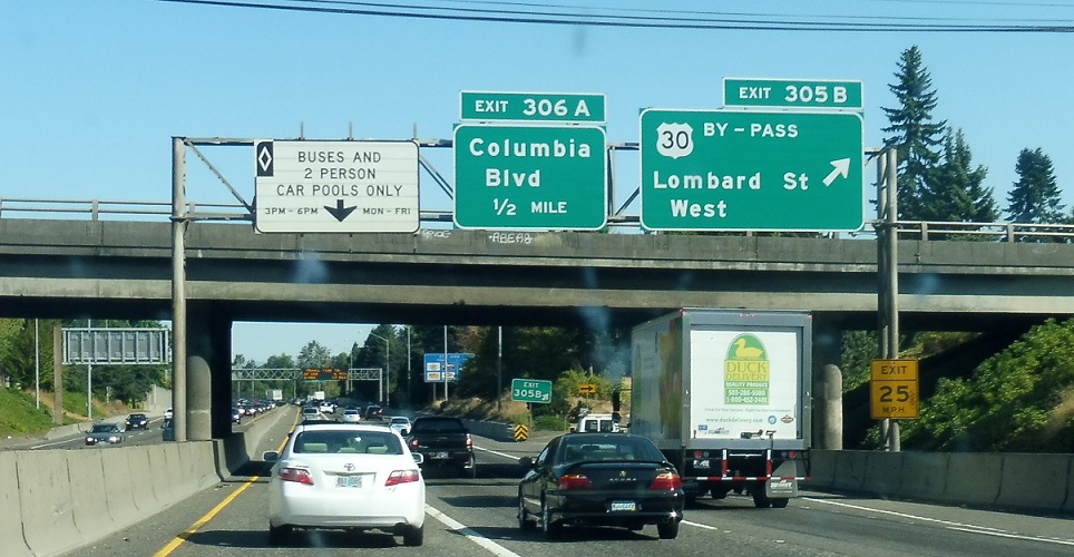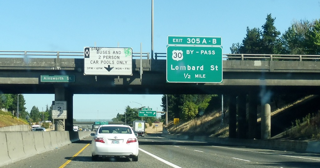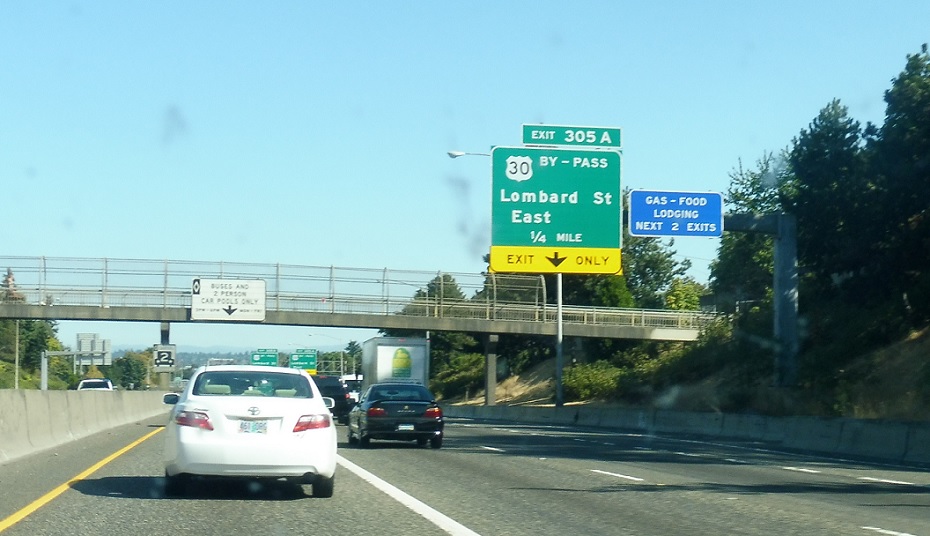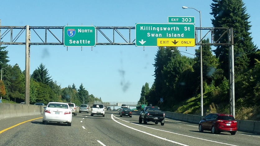 Old school WSDOT style white cutout after the Killingsworth interchange.