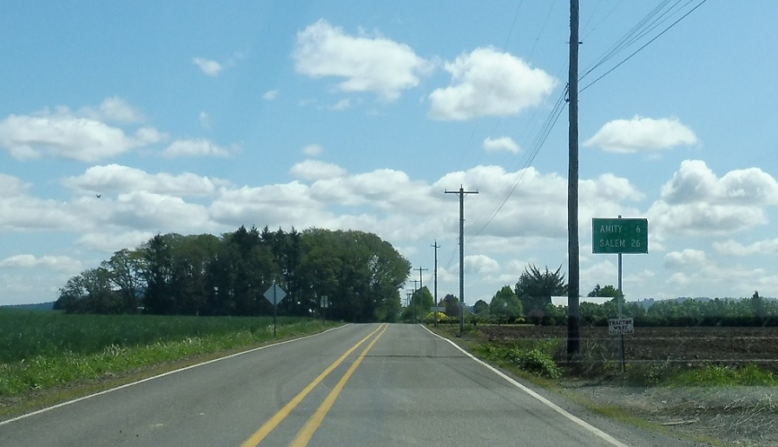 In downtown Amity, we’ll approach Oregon 99W.