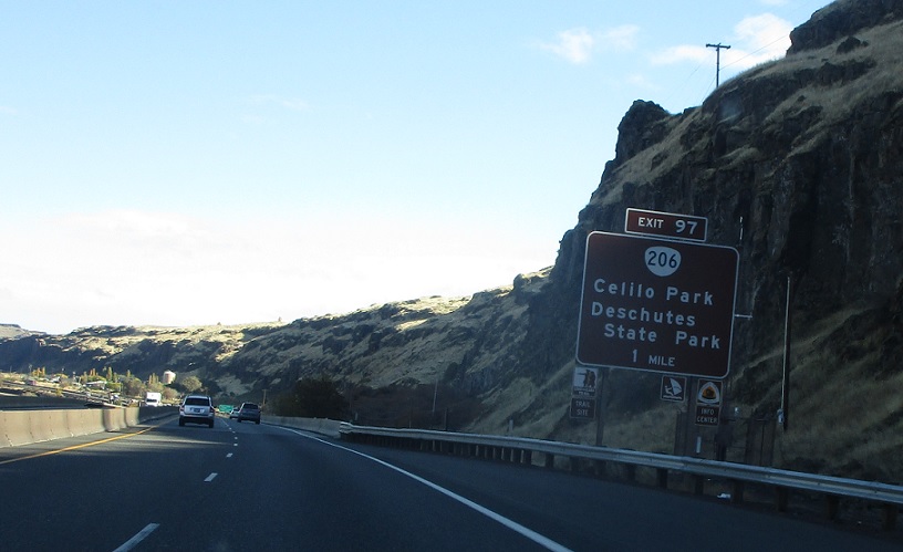 OR 206 will exit in one mile, another instance of a BigBrownSign, although the part that deserves to be brown isn’t actually OR 206, it’s the state parks. 206 is an unremarkable road down to Heppner