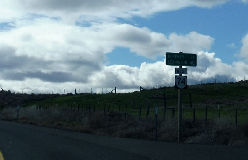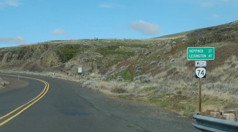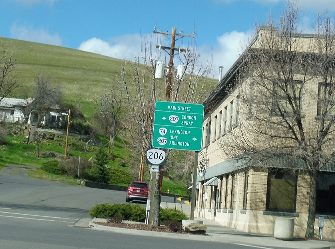 Turn left for 207 south and 206 west towards Condon and Spray. This is the eastern terminus of OR 206. Turn right for 74 west/207 north to Lexington, Ione, and Arlington.