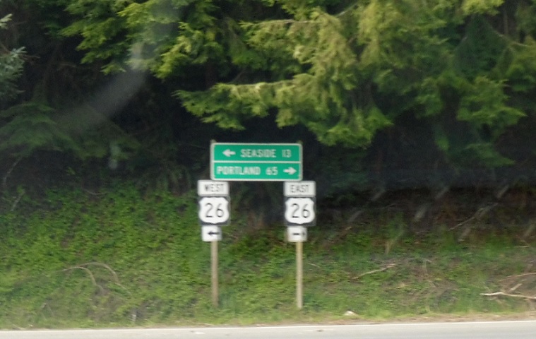 A few miles later, we’ll approach US-26. Oregon 53 ends. Follow 26 east to Portland and 26 west to Seaside.