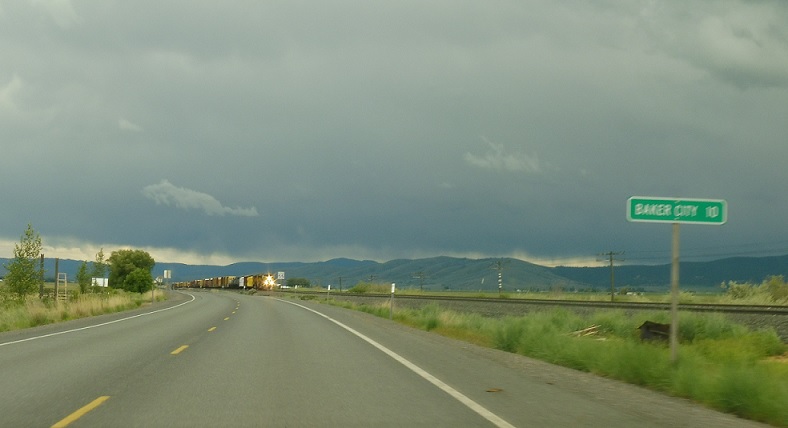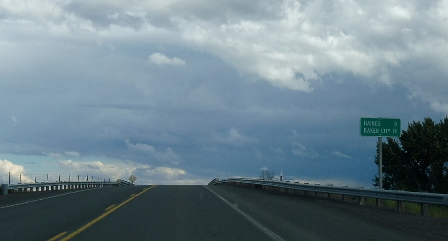 Just after that, we’ll approach Oregon 7. Keep left for 7 towards Richland and Halfway (via OR 86).