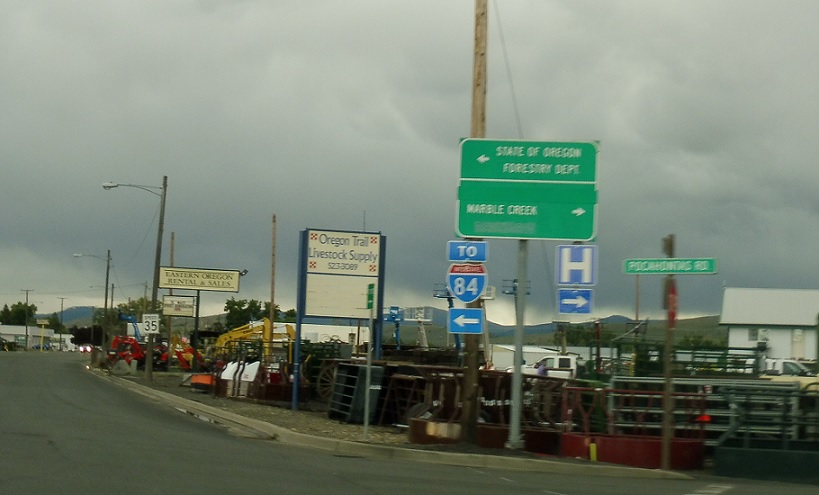 Turn right for 7 south and 30 east, which run concurrent through downtown. Turn left for 7 north to Richland and Hells Canyon via OR 86.