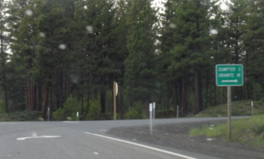Several miles later, we’ll approach OR 410, the unsigned Sumpter Highway.
